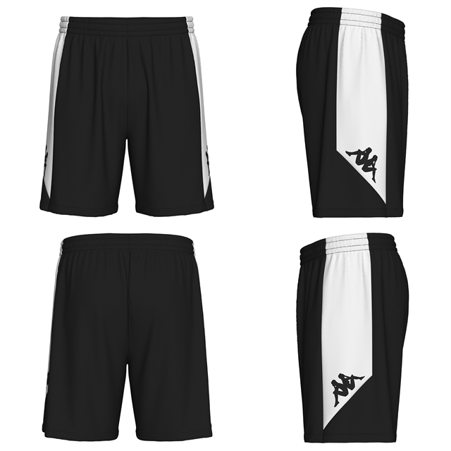 Training short in textured polyester fabric. No Zips. Waist elastic with inner drawcord, inserts on side. Omini logo printed on sides.