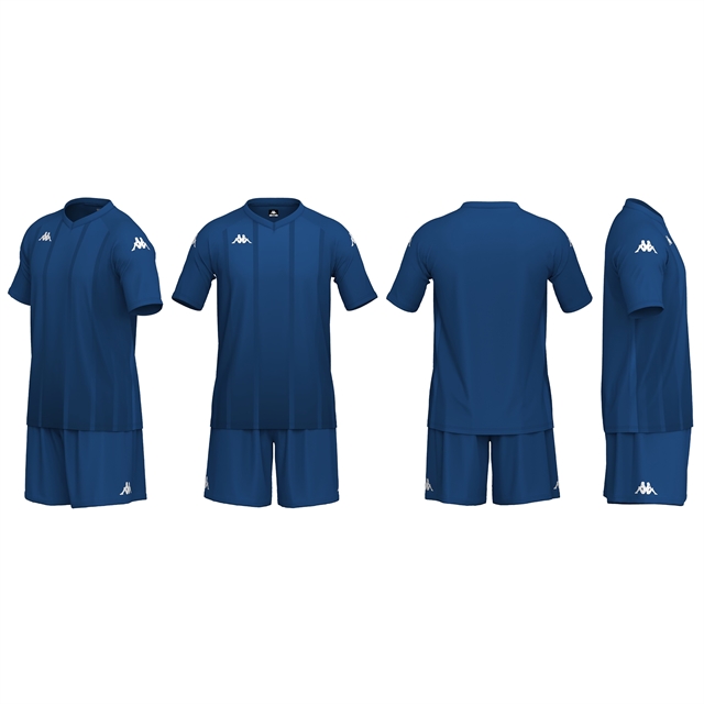 100% polyester. Short sleeve shirt and waist elastic with inner drawcord. Printed Kappa Lettering on top and shorts and printed Omini Logo on top and shorts.