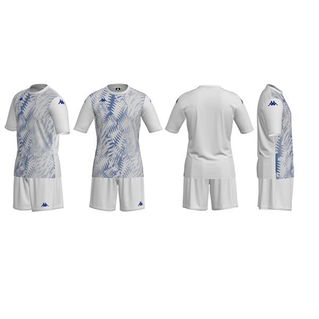 100% polyester. Short sleeve shirt and waist elastic with inner drawcord. Printed Kappa Lettering on top and shorts and printed Omini Logo on top and shorts.